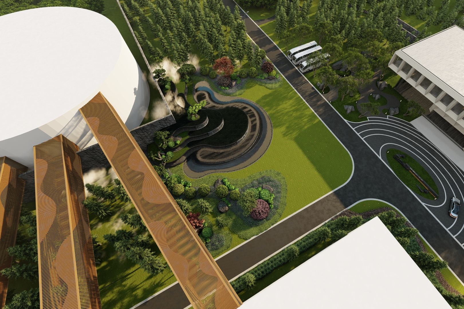 more景觀設(shè)計提取酒杯的形態(tài)設(shè)計成獨具特色的亭子,提供休息、靜讀的場所。在亭子上安裝地...